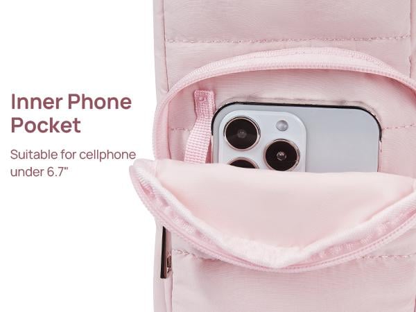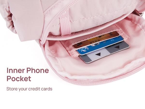 Pockets: Front zipper pocket, phone pocket (fits phones up to 6.7"), side pockets, inner card slots